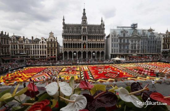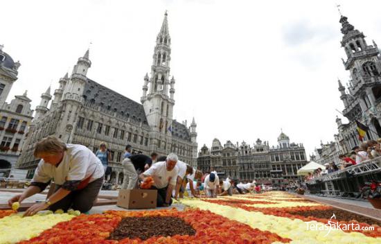 Belgia sedang memperingati peristiwa tahunan "La Fete De La Fleur" atau pesta bunga di bulan Agustus. Ahli bunga merancang karpet raksasa dari bunga di depan Grand Place di Brussel. Karpet ini dibuat menggunakan 700 ribu bunga.