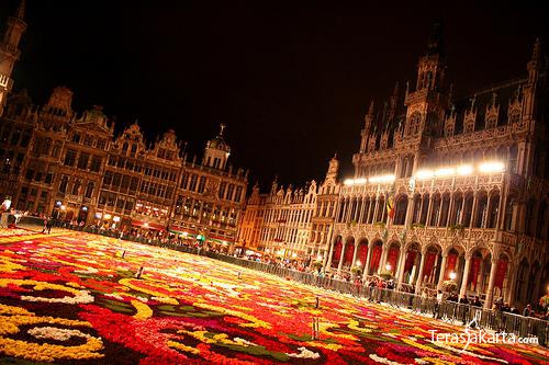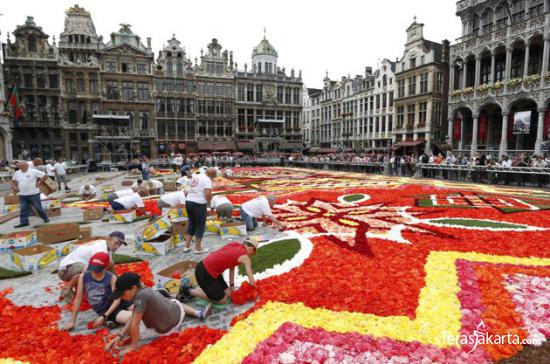 Belgia sedang memperingati peristiwa tahunan "La Fete De La Fleur" atau pesta bunga di bulan Agustus. Ahli bunga merancang karpet raksasa dari bunga di depan Grand Place di Brussel. Karpet ini dibuat menggunakan 700 ribu bunga.
